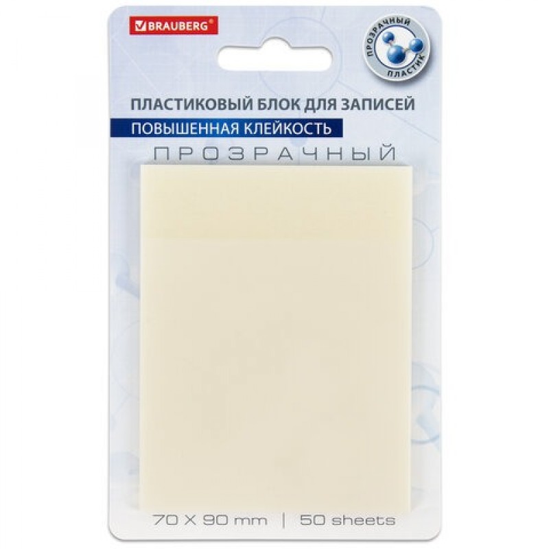 Блок пластиковых прозрачных стикеров в форме прямоугольника размером 70х90 мм состоит из 50 листов. Стикеры легко клеятся к любой поверхности. Возможно многоразовое использование. Не оставляют следов, водостойкие. Сохраняют свои клейкие качества в независимости от способа отделения от блока.