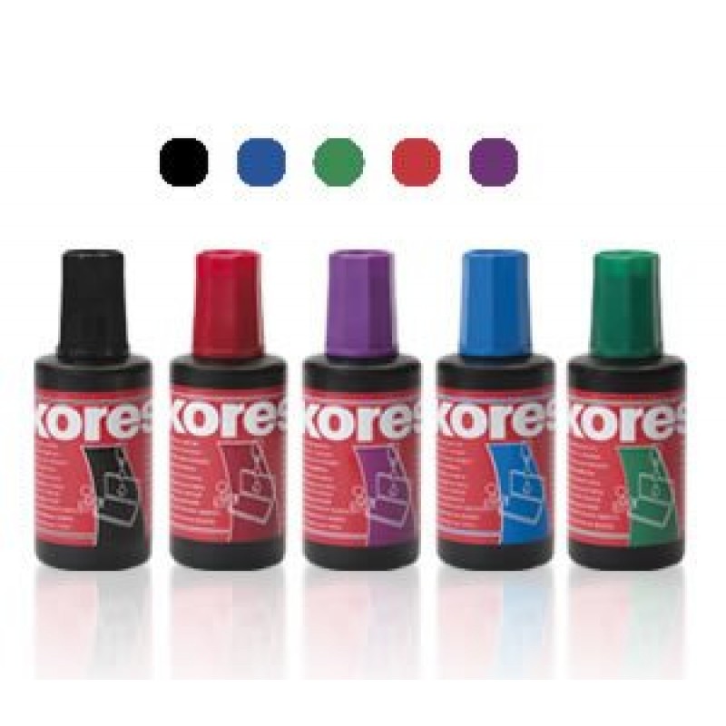 Краска штемпельная фирмы Kores. На водной основе. Объем флакона 27 мл. Флакон снабжен дозатором, обеспечивающим равномерное нанесение краски на подушку.